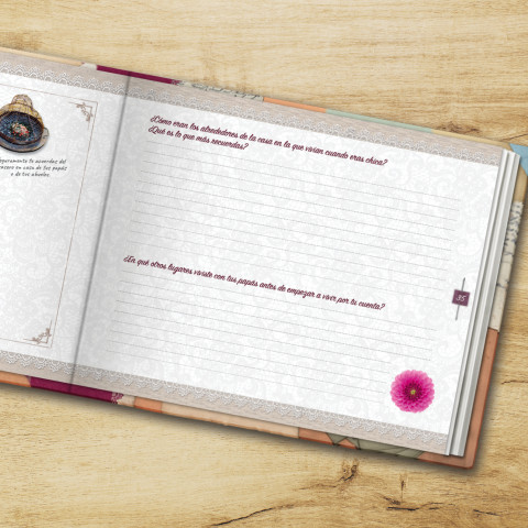 Unas preguntas cuidadosamente seleccionadas ayudan a plasmar y comprender la vida de la abuela desde su niñez hasta la actualidad. Por ejemplo: qué quería llegar a ser cuando era pequeña, cómo eran sus padres y sus abuelos, dónde jugaba, cuándo y dónde conoció al abuelo, cómo fue su vida juntos, cómo percibió los acontecimientos históricos que le tocó vivir, en su opinión, qué es lo que más ha cambiado hoy en día con respecto a su juventud.